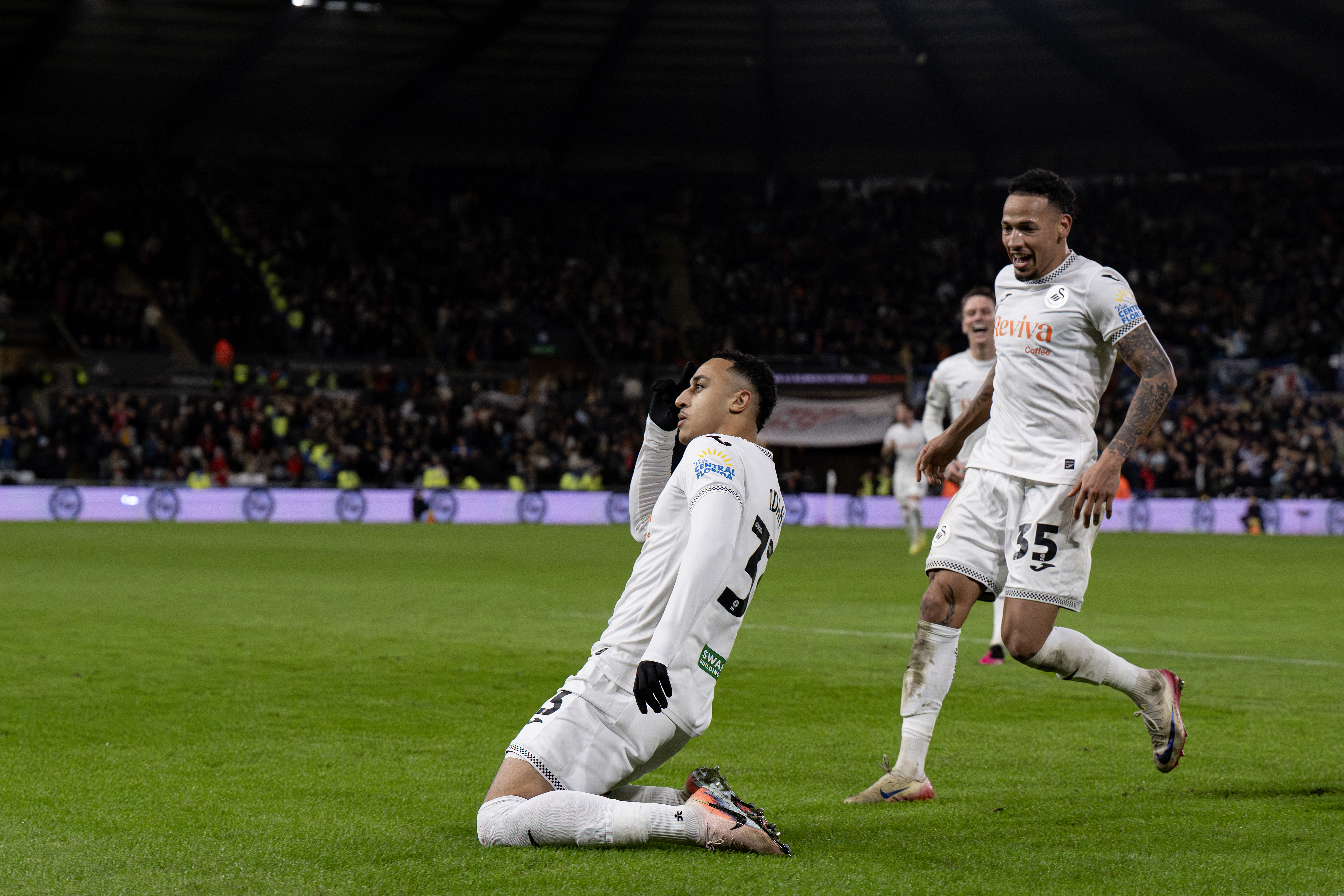 Check out our selection of the best matchday and action images from Swansea City's Championship clash with Wrexham underneath the lights at the Swansea.com Stadium.